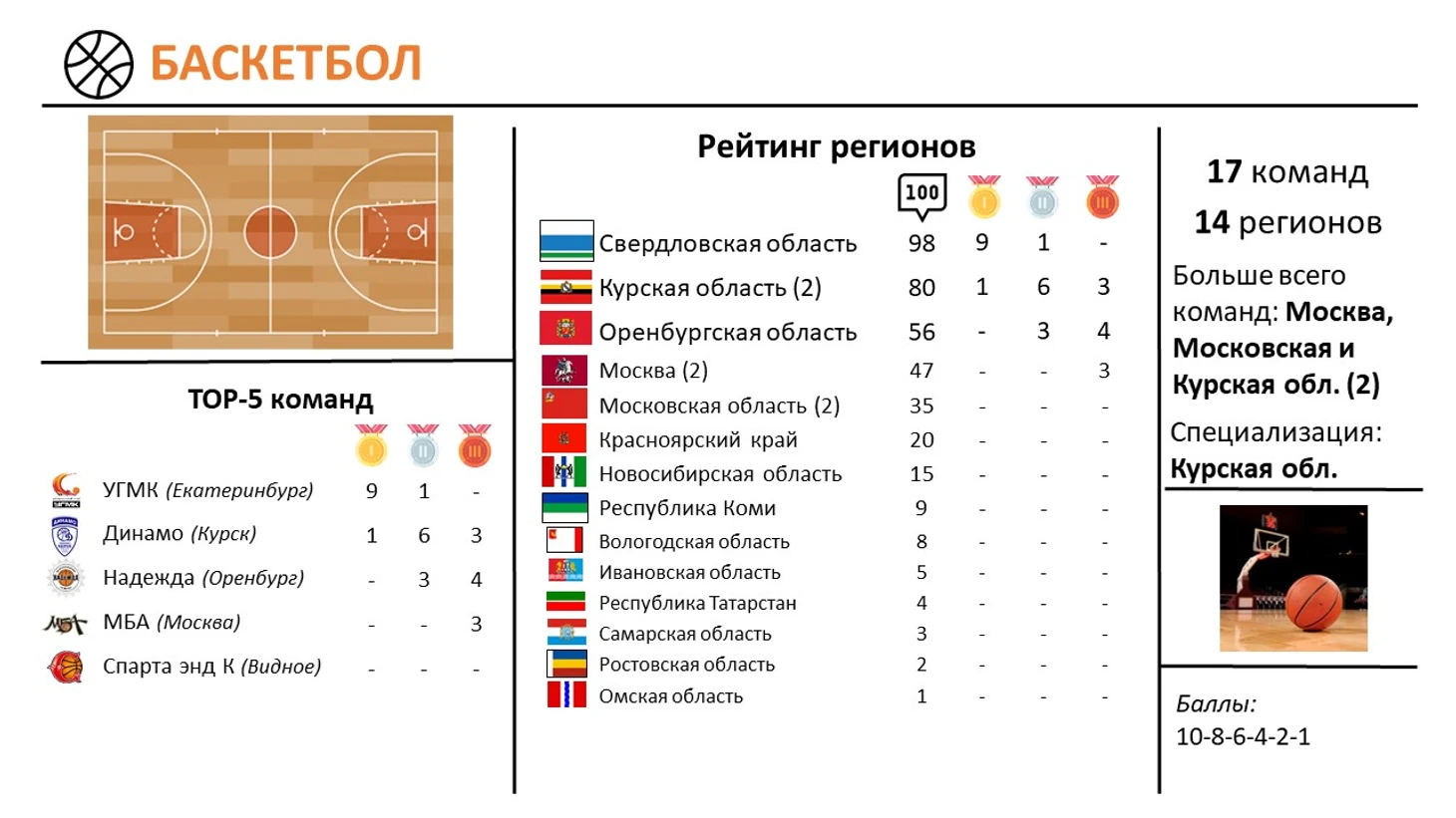 TOP-спорт - вид спорта с наибольшей суммой баллов в данном регионе;