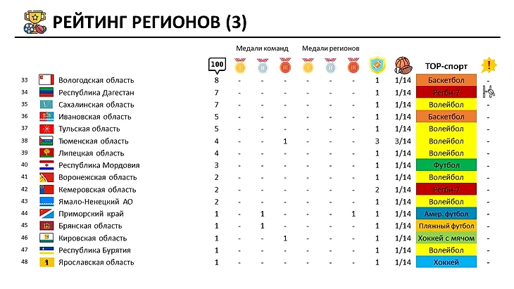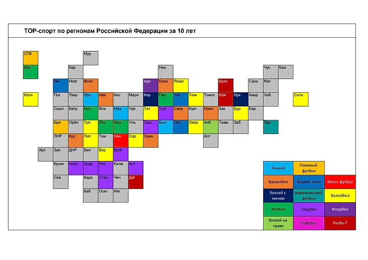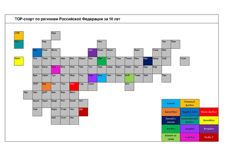 Ещё есть карта РФ по самым успешным видом спорта в регионах.