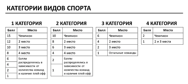 Медали посчитаны как призовые места в 14 видах спорта согласно полученному рейтингу в конкретном виде спорта;