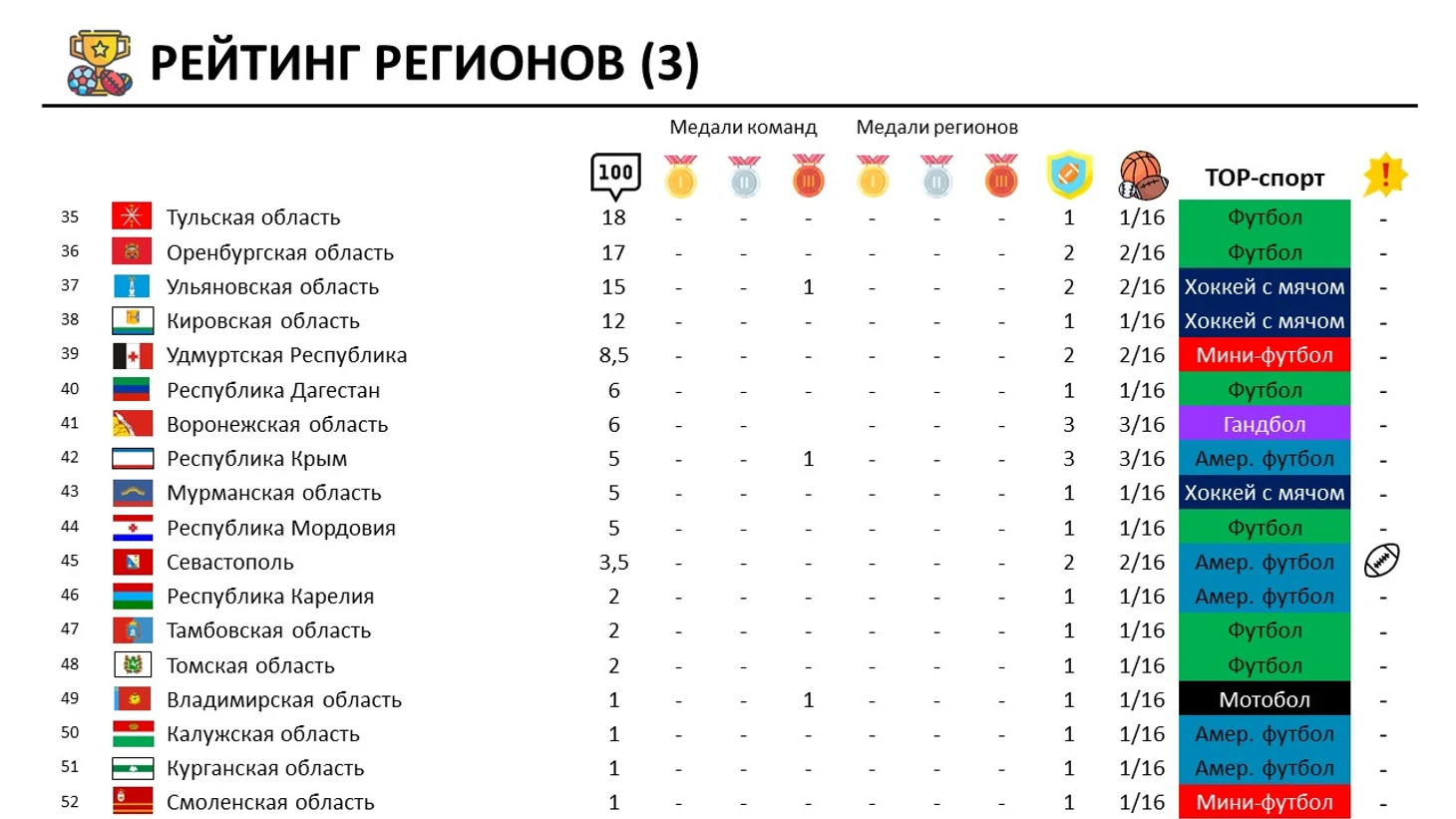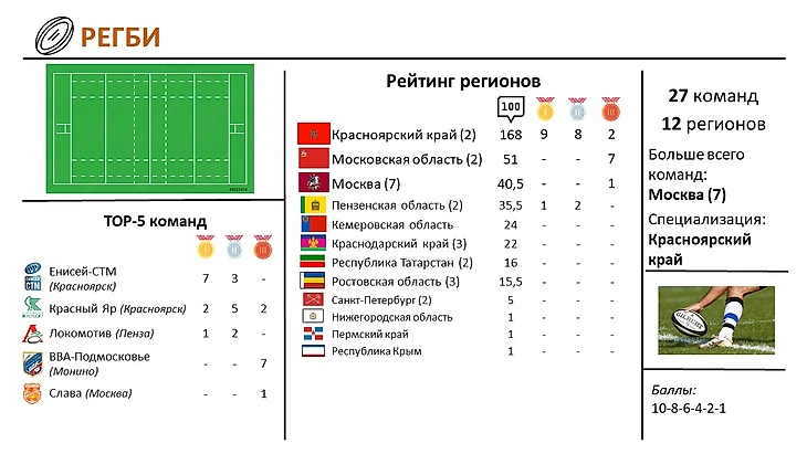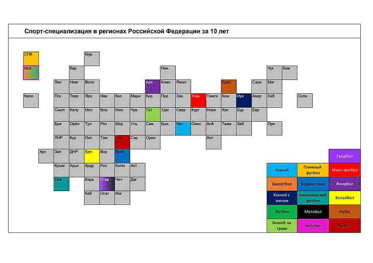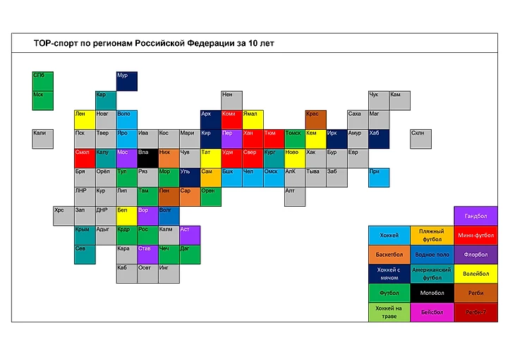 Ещё есть карта РФ по самым успешным видом спорта в регионах.