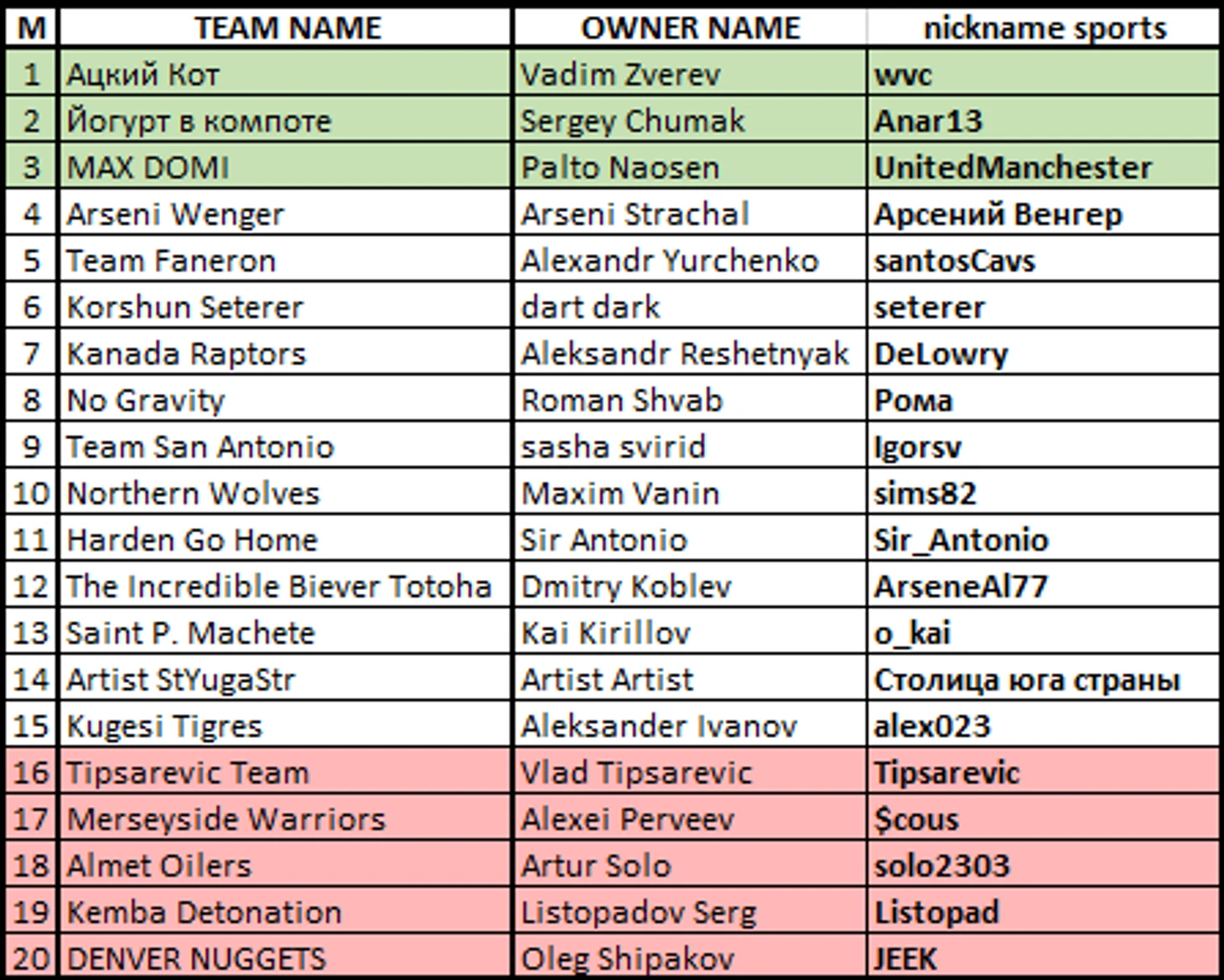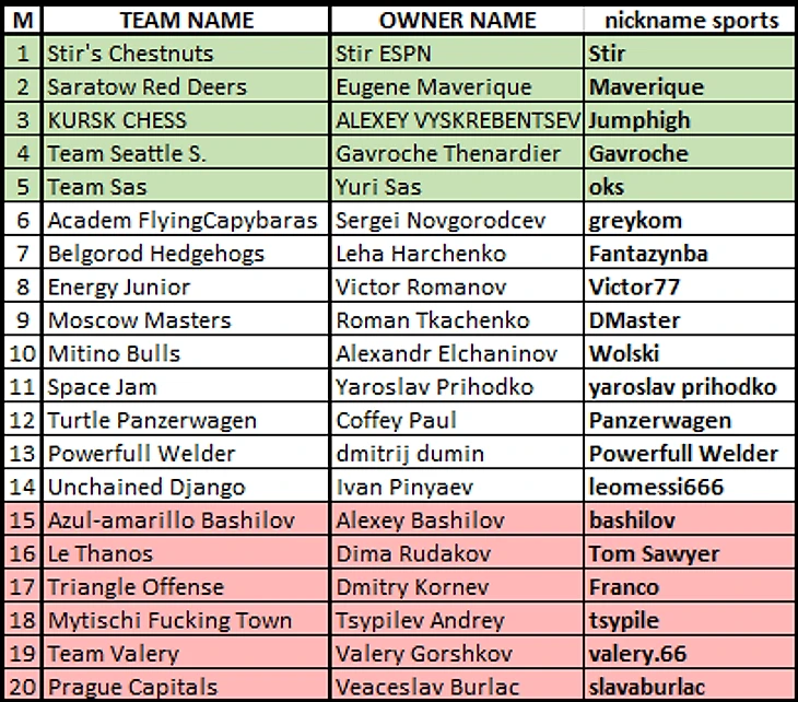 Данные по составам участников лиг на сезон 2019/20, их контакты и подтверждения участия заношу в гуглодок