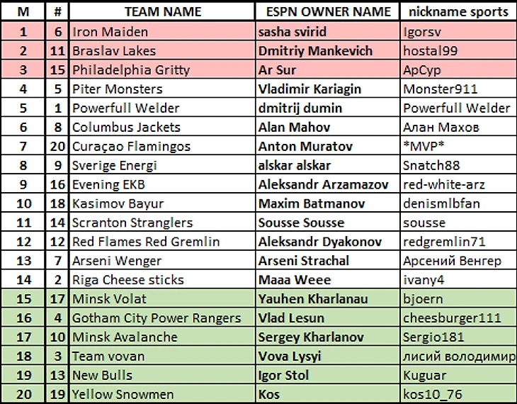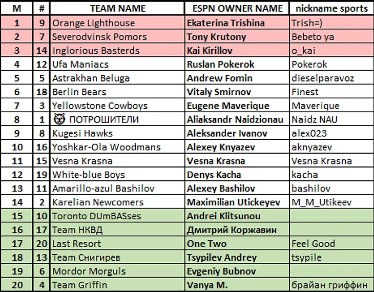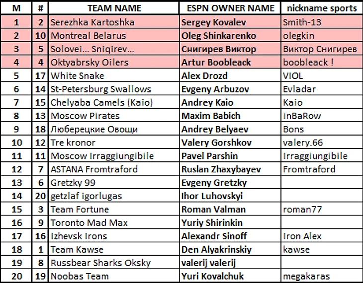 Все кто попал в "цветные" диапазоны в предстоящем сезоне меняют дивизионную прописку, проверьте наличие своих данных e-mail в гуглодоке или скиньте мне в личку e-mail, вышлю приглашение в новую лигу.