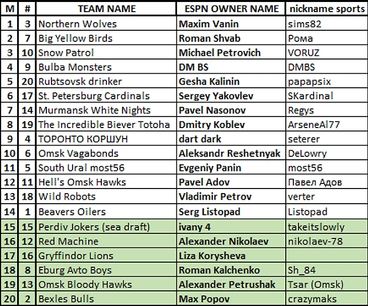 Система лиг «Russian Wild Hogs» fantasy NHL на ESPN. Перекличка участников и набор новичков на сезон 2020/21