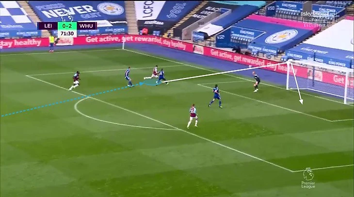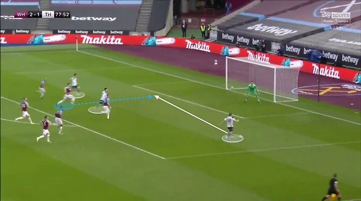 Однако, когда Кейн получил мяч и вырезал передачу на вбегающих в штрафную Сона и Алли, Райс каким-то образом оказался за спинами защитников «Вест Хэма» и вынес мяч от ворот.