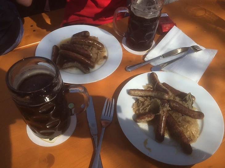 Нюрнбергские сосиски с капустой и пивом — отличный обед, позволяющий насытиться на весь оставшийся день.
