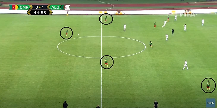 Позиционная атака - то, чего у Камеруна практически нет. Виден определенный перекос на левый фланг атаки, но цельной картины игры не видно. Возможно, главная проблема в отсутствии креативного игрока в центре поля - плеймейкера. В схеме 4-4-2, которую правильнее интерпретировать как 4-2-2-2, в случае Камеруна, подразумеваются два опорника и два игрока под нападающими, либо вингеры, как у камерунцев. Но получилось так, что вингеры слишком заточены под игру на флангах, а опорники лишь разгоняют атаку в начальной фазе, проще говоря, не хватает связующего футболиста между нападением и опорной зоной, расположенного ближе к атаке и менее вовлеченного в оборону.