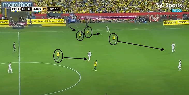 Эквадорцы периодически включают мощный прессинг, блокируя все возможные варианты передач и атакуя, владеющего мячом, соперника.