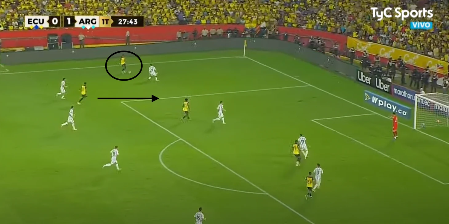 Эквадор очень силен на флангах. Они любят и умеют прорываться по краям, используя индивидуальные качества футболистов. В недавнем матче с Аргентиной, который закончился в ничью, эквадорцы просто разорвали соперника на правом фланге. Крайний защитник эквадорцев Первис Эступиньян раз за разом убегал от Гонсало Монтьеля, отвечавшего за правый край обороны Аргентины.