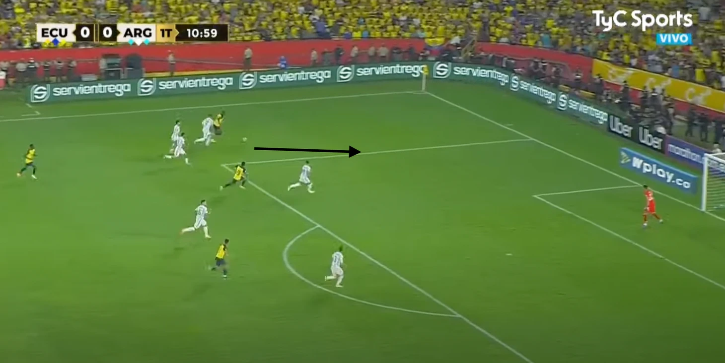За счет «лишнего» игрока в атаке, у Эквадора появлялся второй темп, что еще сильнее обостряло ситуацию у штрафной соперника.