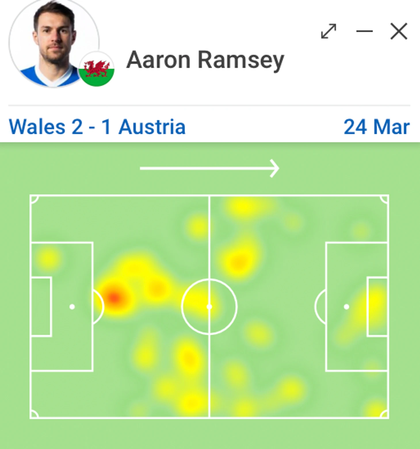 Если бы это была тепловая карта футболистов Ганы, то можно было бы подумать, что Аарон Рэмзи – центральный защитник.