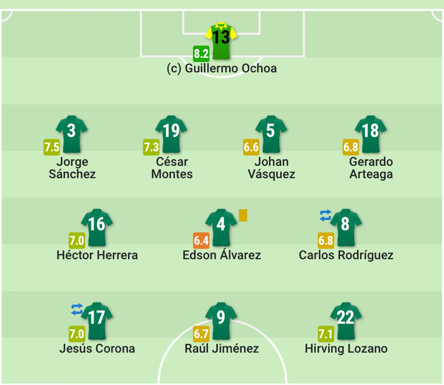 Скажу как есть, мне сложно оценивать состав сборной Мексики, потому что многих игроков я не знаю. Этот вариант расстановки включает номинально сильнейших футболистов, от него и буду отталкиваться.