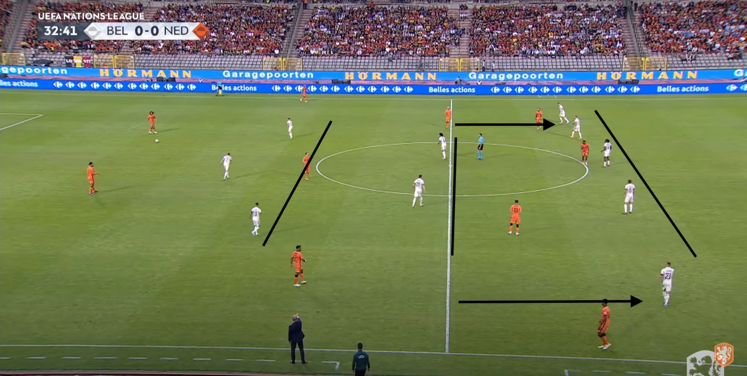 Бельгия играет в низком темпе с доминированием в центре поля. Команда сфокусирована именно на поиске ошибок в построении соперника, а если их нет – нужно их создать с помощью движения.