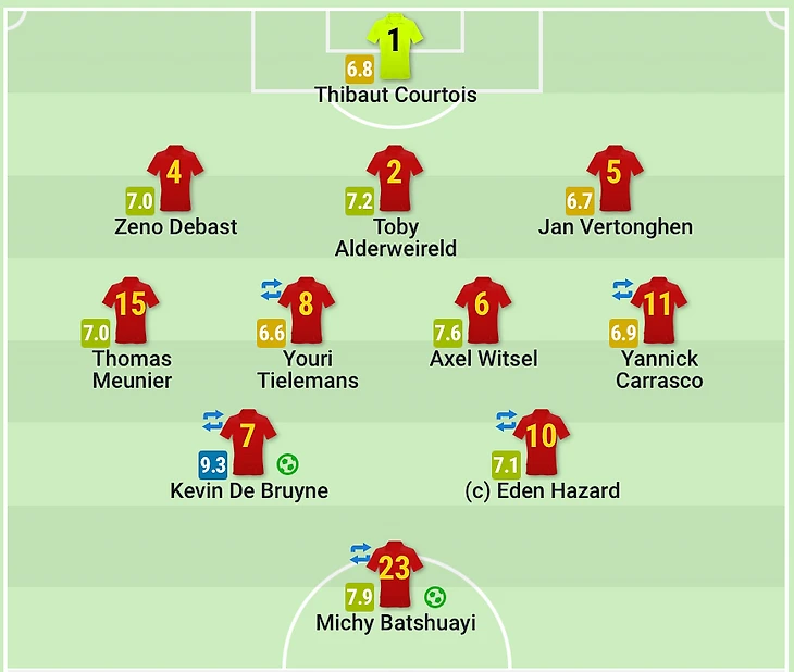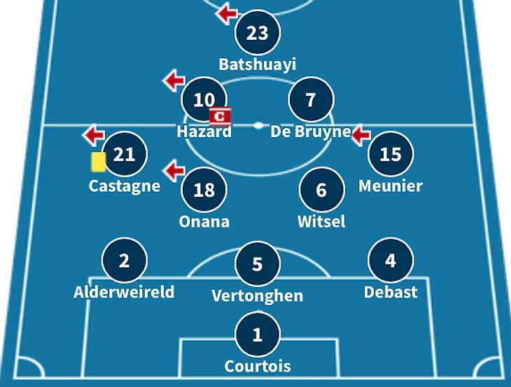 Полузащита: Салемакерс – Тилеманс – Витцель – Карраско. Перед ними де Брюйне и Азар.