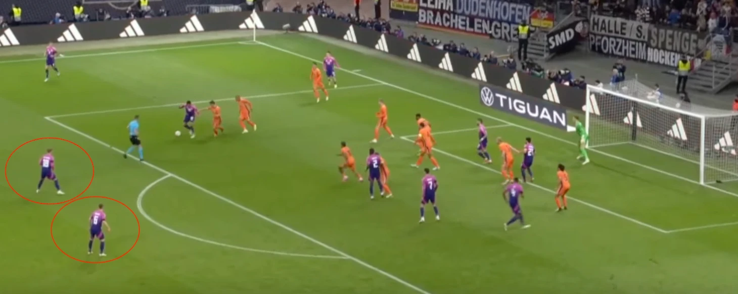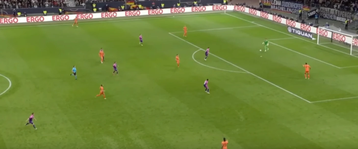 В игре с осторожными Нидерландами немцы действовали острее и даже практиковали мощный прессинг, пытаясь задушить атаки соперника на корню. Иногда получалось, но пару раз случались привозы на правом фланге. Видимо, на Евро мы увидим агрессивную Германию, но не всегда.
