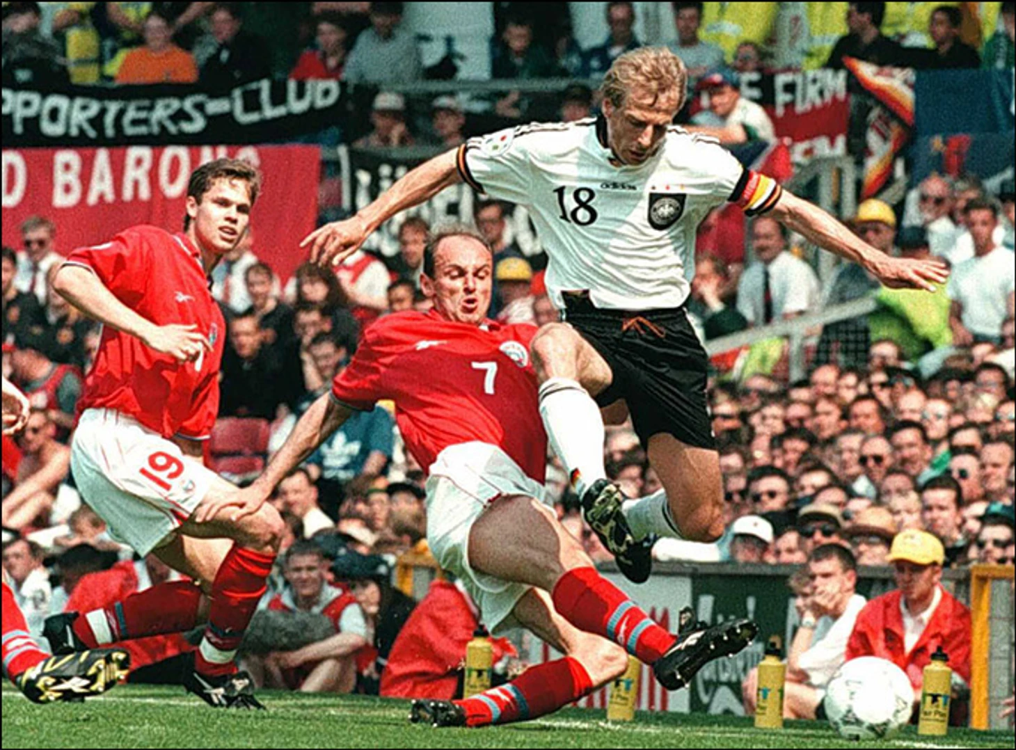 Алан Ширер забивает уже на 3-й минуте, но радость была недолгой, потому что немцы... Есть немцы. Штефан Кунтц отыграл отставание уже к 16-й минуте.