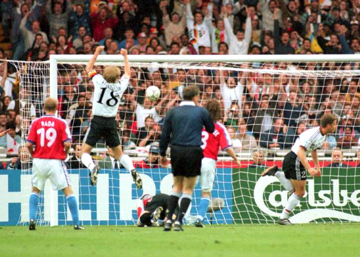 На 59-й минуте Патрик Бергер неожиданно выводит чехов вперёд, реализуя одиннадцатиметровый удар.