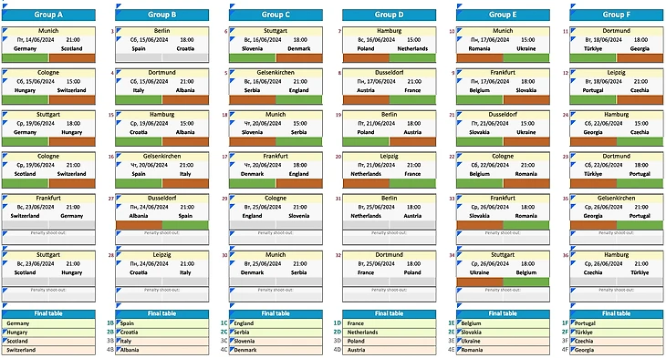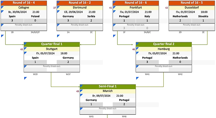 В этот раз я решил обойтись лишь исходами, хотя бы на стадии группового этапа. Всё довольно просто: