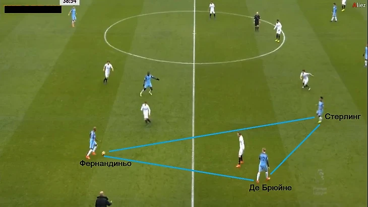 В свое время подобные треугольники были в «Барселоне», «десятками» на поле были Хави и Иньеста. Отличие текущих фланговых треугольников «Манчестер Сити» заключается в том, что через них идет атака, в «Барсе» же с помощью них команда возила соперника, атака все равно шла преимущественно через центр.