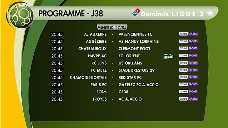 После 38 тура «Газелек Аяччо», «Аяччо» и «Осер» в худшем случае ждут стыковые матчи. Таким образом, уравнение для них простое: победа равняется сохранению прописки. Но ситуация не так радостна для «Газелека», потому что им предстоит ехать в гости к «Пари», который борется за плей-офф. К тому же пресловутая разница голов неблагоприятна для них. Вторая корсиканская команда отправится к «Труа», который набрал хорошую форму и готовится к битве за путевку в Лигу 1, и, конечно же, им хочется сыграть только в финале плей-офф, чтобы быть свежее к матчу против 18-й команды из элиты. В конце концов, именно «Осер» находится в наиболее комфортной ситуации. «Бургундцы» сыграют с «Валансьеном», который уже все задачи для себя решил, и могут рассчитывать на очки, а разница голов у них и так благоприятна.