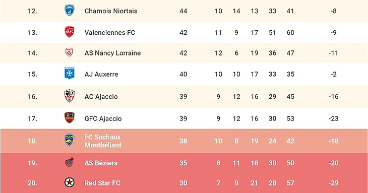 «Нанси» и «Валансьен» обеспечили прописку во втором дивизионе, поэтому борцов за выживание осталось всего пять: «Безье», «Сошо», «Газелек Аяччо», «Аяччо» и «Осер».