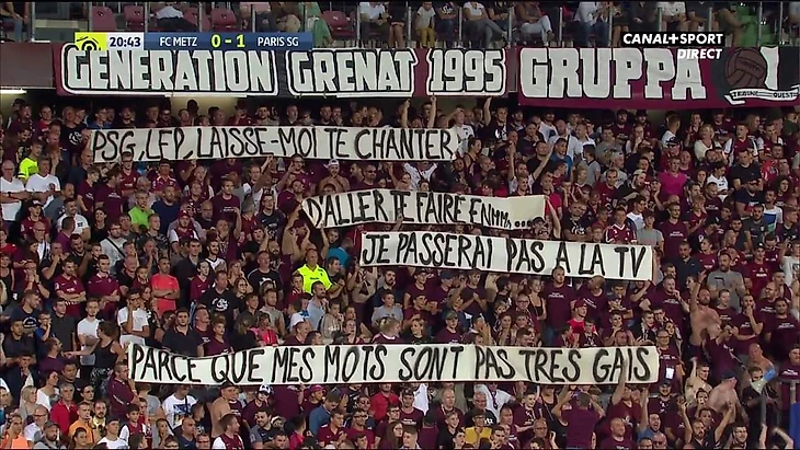 Матч "Метц" - ПСЖ был прерван на несколько минут из-за... песни. Фанаты "драконов" процитировали Angèle - Balance Ton Quoi: "ПСЖ, ПФЛ, позвольте мне спеть тебе... Идите вы, мммм... Я не пойду на телевизор, потому что мои слова не очень красивые!"