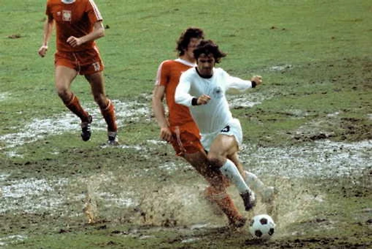 Перед матчем во Франкфурте прошёл страшный ливень: поле было затоплено, а пожарные отказались его откачивать. Обеим командам трудно. К тому же Ян Томашевский (лучший кипер того турнира) парирует пенальти Ули Хёнесса (да, того самого, будущего президента «Баварии»). Но на 76-й минуте встречи Германия забивает столь важный и гол: Герд Мюллер выходит один на один и отправляет мяч в ворота. Немцы в финале.