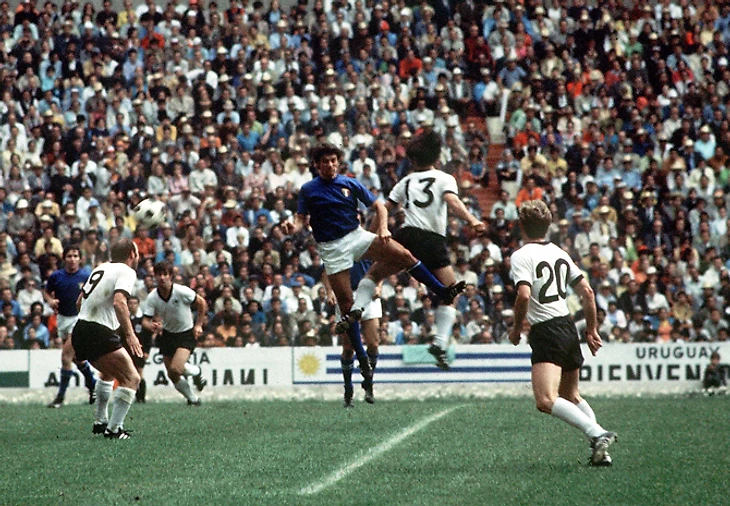 «Матч столетия» прошел на стадионе Ацтека в Мексике между уже упомянутыми Германией и Италией. Та Италия была образцовой прагматичной командой с одним из лучших вратарей эпохи Дино Дзоффом (в будущем самым возрастным капитаном-чемпионом мира), Джанни Риверой – живой легендой «Милана», игравшей за клуб свыше 19 лет, – и лучшим бомбардиром в истории «скуадры-адзурры» Луиджи Ривой.