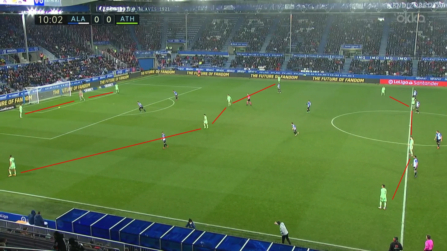 Прежде всего, обратимся к классическому пониманию Атлетика – вертикальности. Если соперник играет высоко в обороне, то обязательно найдётся пространство для быстрой вертикальной атаки. Этим баски и любят пользоваться.