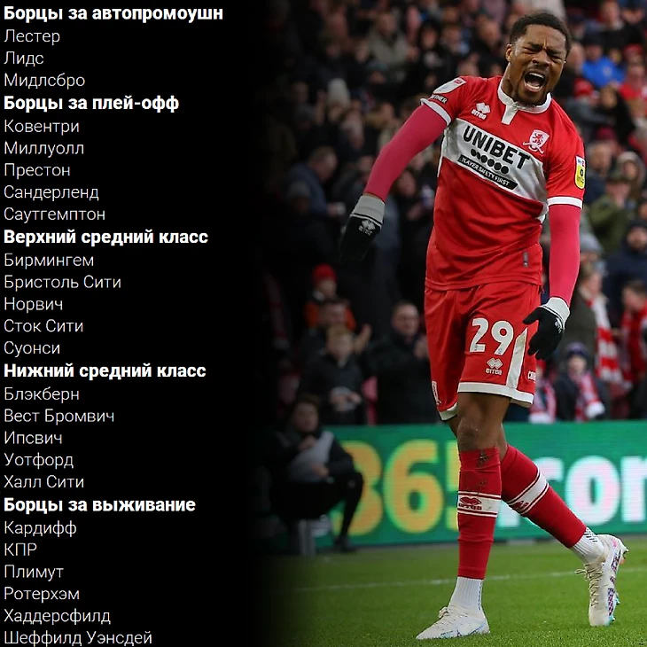 Почему «Мидлсбро» упадёт в посредственность: арендники (Джайлз, Рэмзи, Арчер) вернулись в свои клубы, а равноценно заменить их клуб пока не смог, и вряд ли сможет. Плюс, у меня нет веры в то, что Акпом (28 голов из 22 xG) и Форсс (10 голов из 7 xG) смогут продолжить оверперформить, не говоря уже о том, чтоб набивать столько xG. Ещё нависает вероятность, что тренера Майкла Кэррика посреди сезона могут просто позвать в другой клуб рангом повыше. Вот так вот.