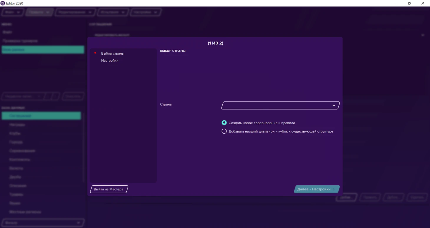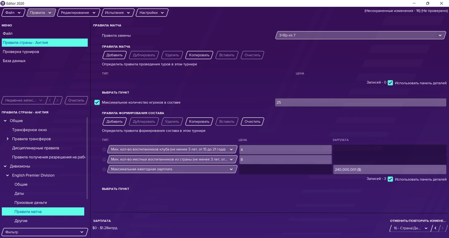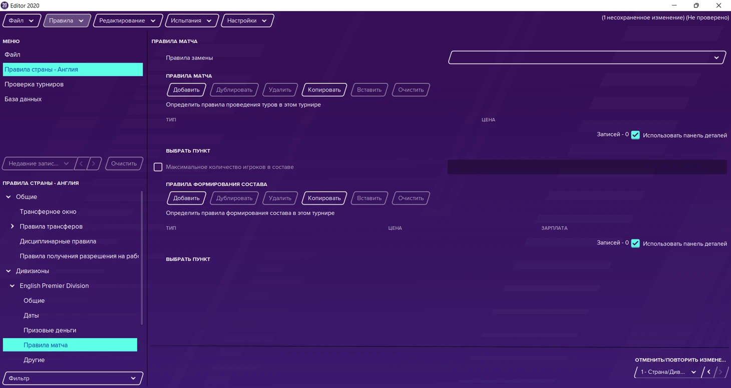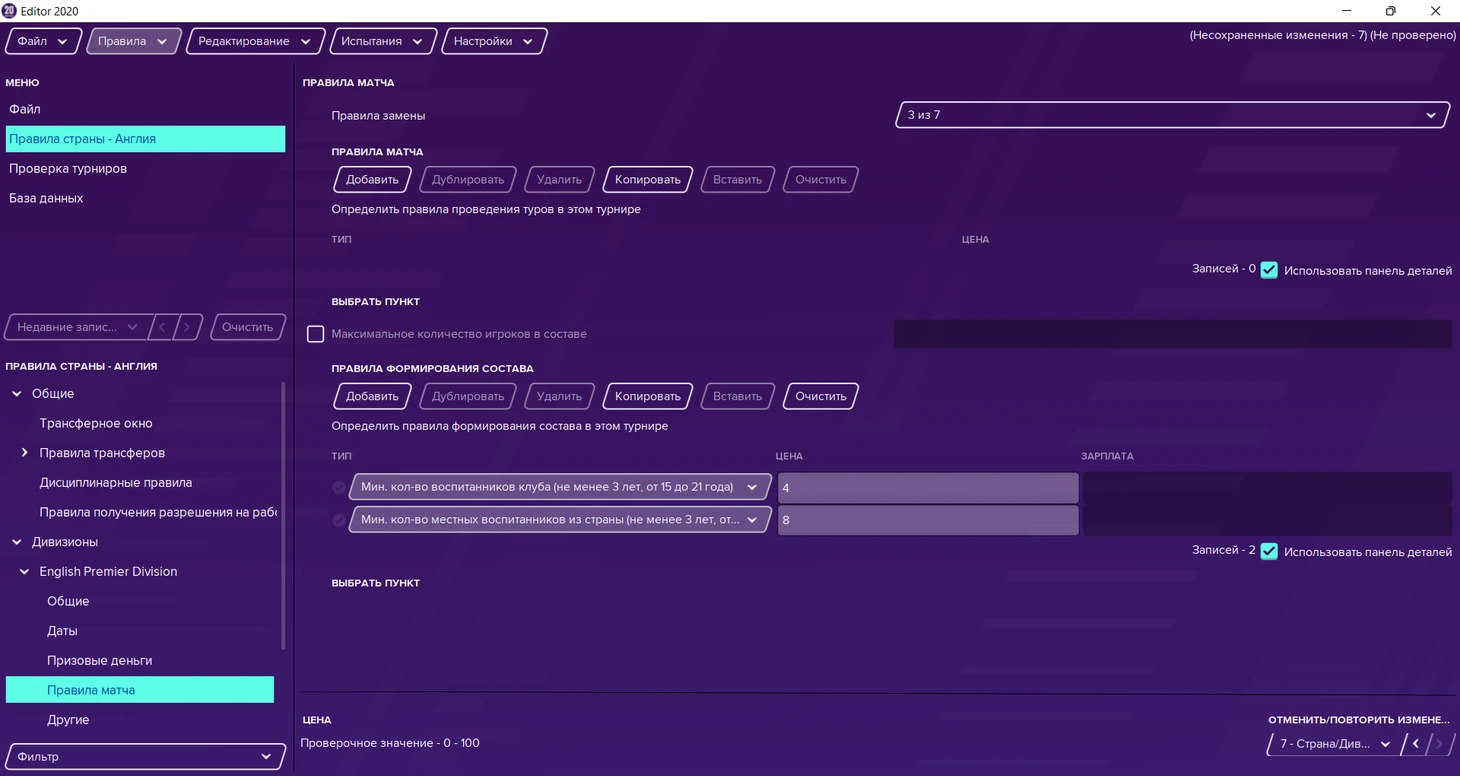 Свои симуляции я планирую тестировать на 5 ведущих чемпионатах, а также на родной лиге (я из Беларуси) и чемпионате России. Поэтому создадим 7 правил нации для избегания разночтений.