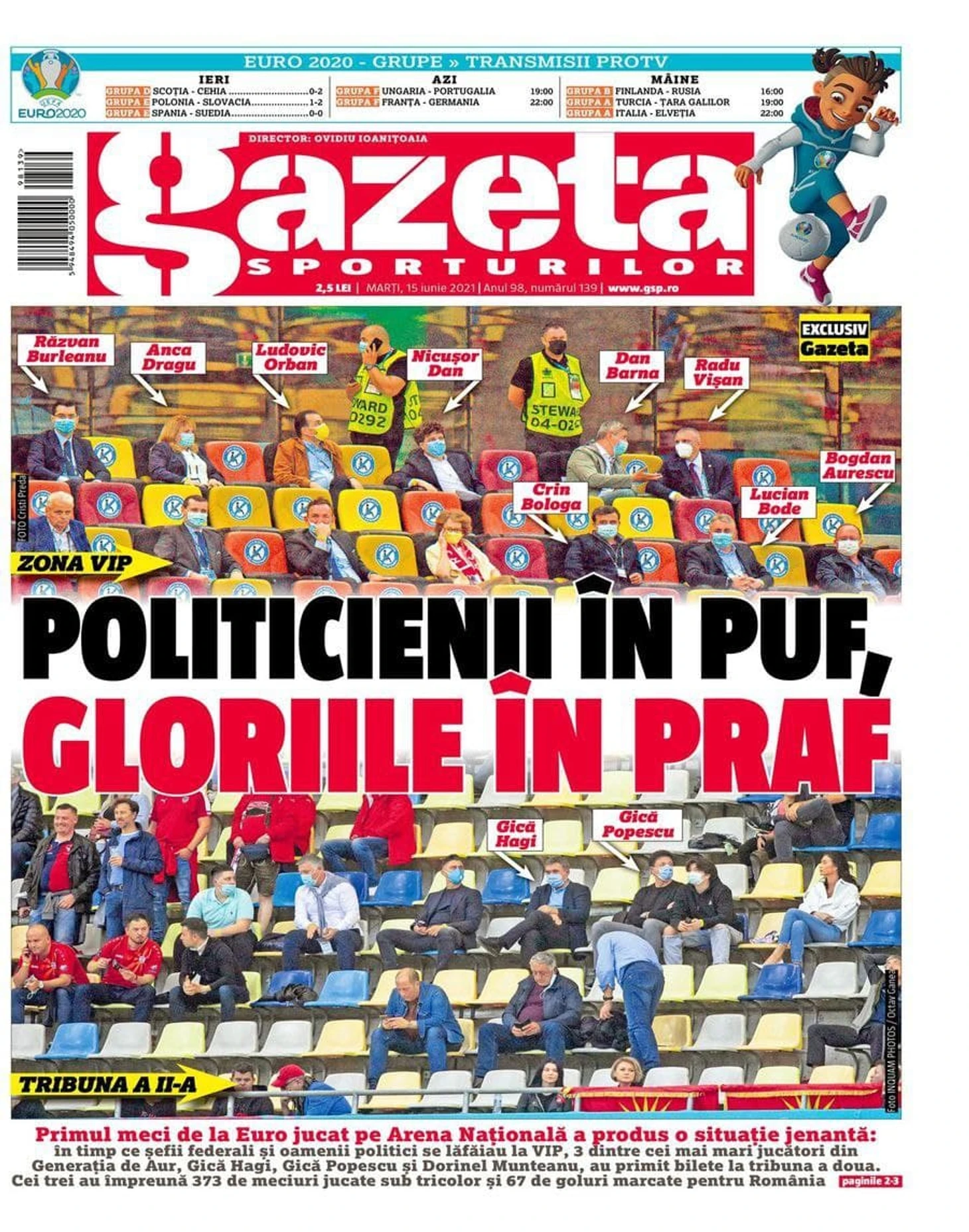 Перед вами обложка румынской спортивной газеты с эпичным заголовком: «Политики наверху, звезды внизу».