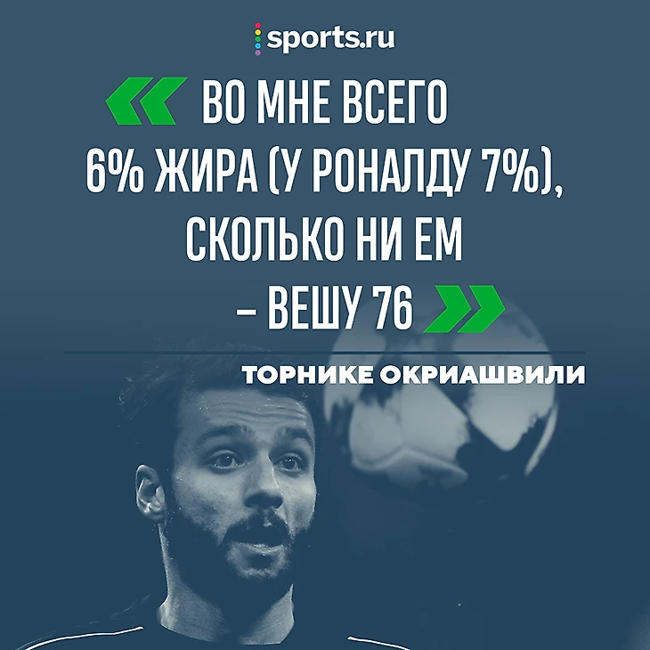 – Нет, не по хачапури. Я люблю хинкали. Сразу из самолета поеду за ними! Маму этим не мучаю, хожу к знакомым в ресторан – там недорого, по-домашнему. Ни в Москве, нигде в мире таких хинкали больше нет. Будете у нас, свожу обязательно. Кстати, я из Грузии никогда не привожу лишние килограммы. Во мне всего 6% жира (у Роналду 7% – Sports.ru), сколько ни ем – вешу 76. Все грузинские футболисты завидуют, особенно Георгий Чантурия из «Урала».