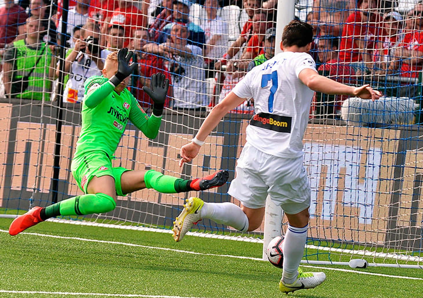 56 минута. Деспотович бьет из-под двух защитников с линии вратарской, Максименко занимает правильную позицию.