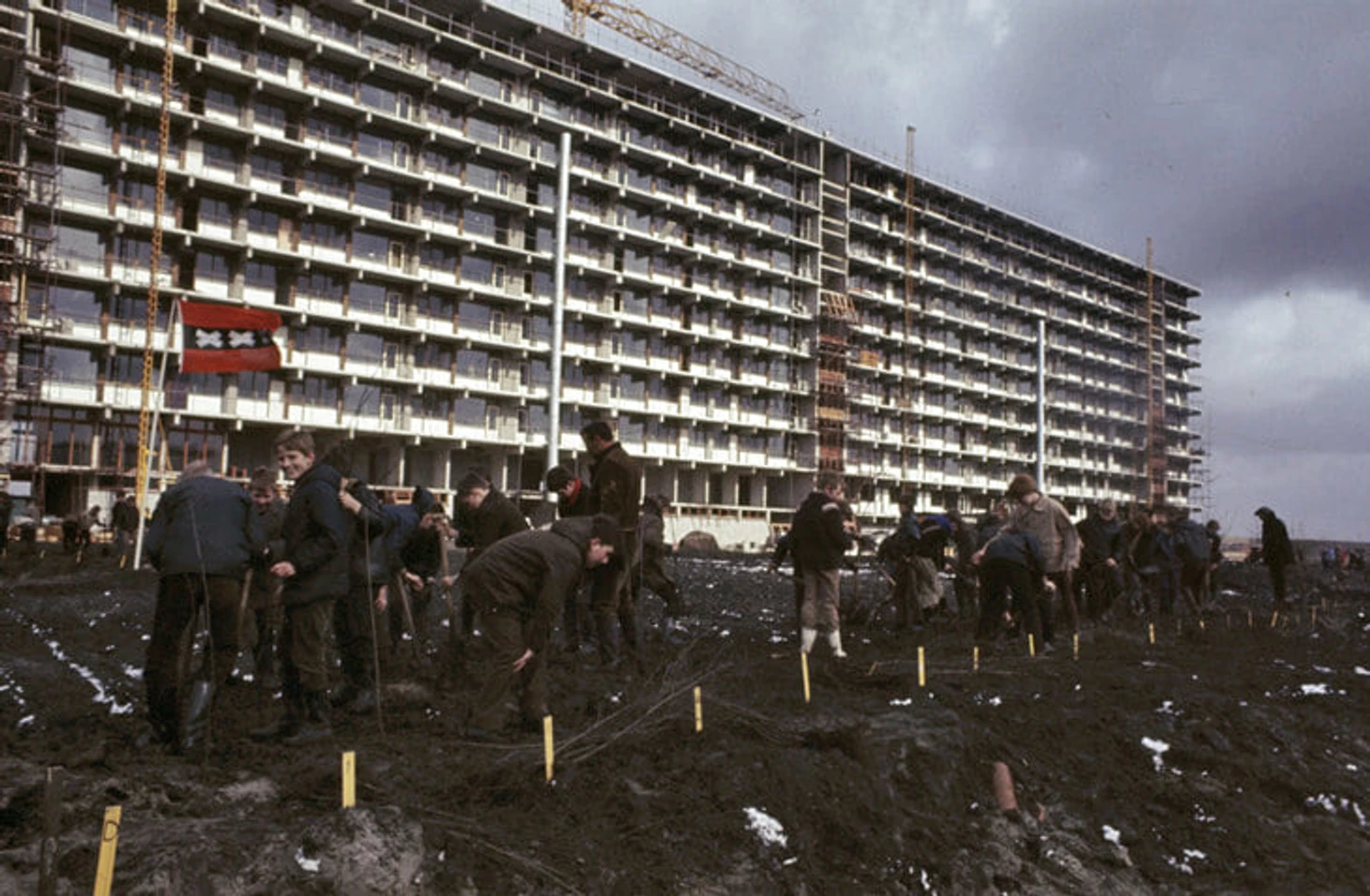 Школьники сажают деревья для строящихся квартир в Бейлмере, 1968 год