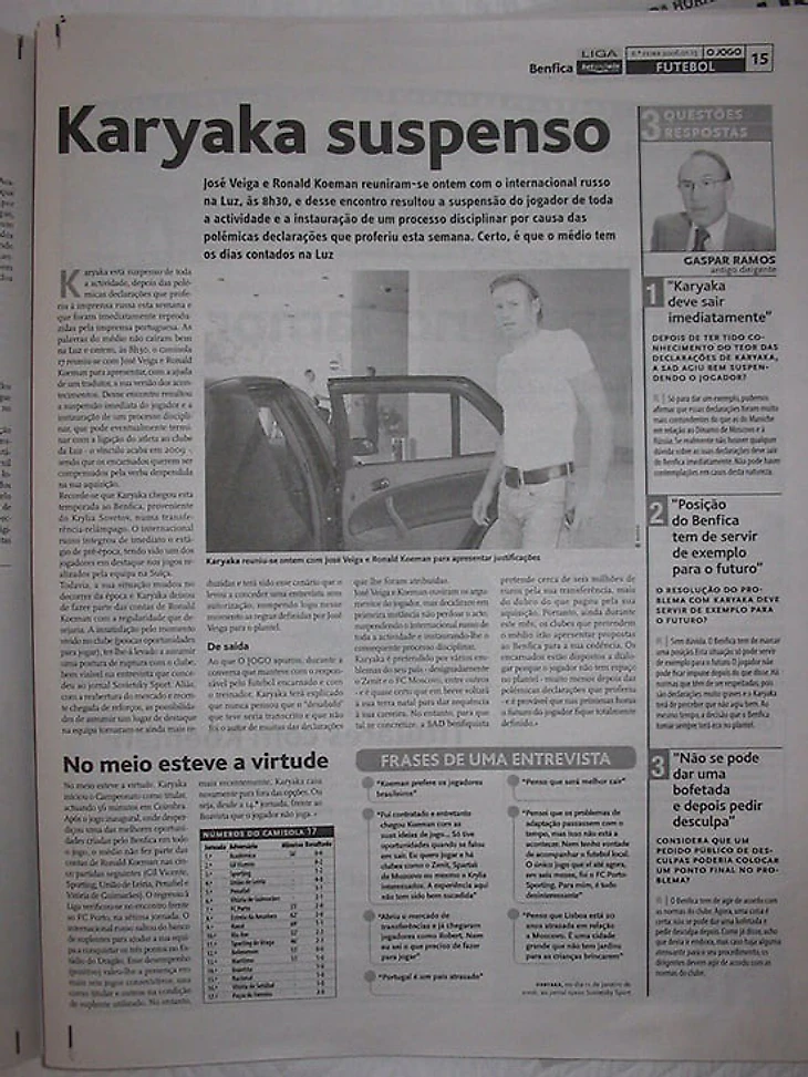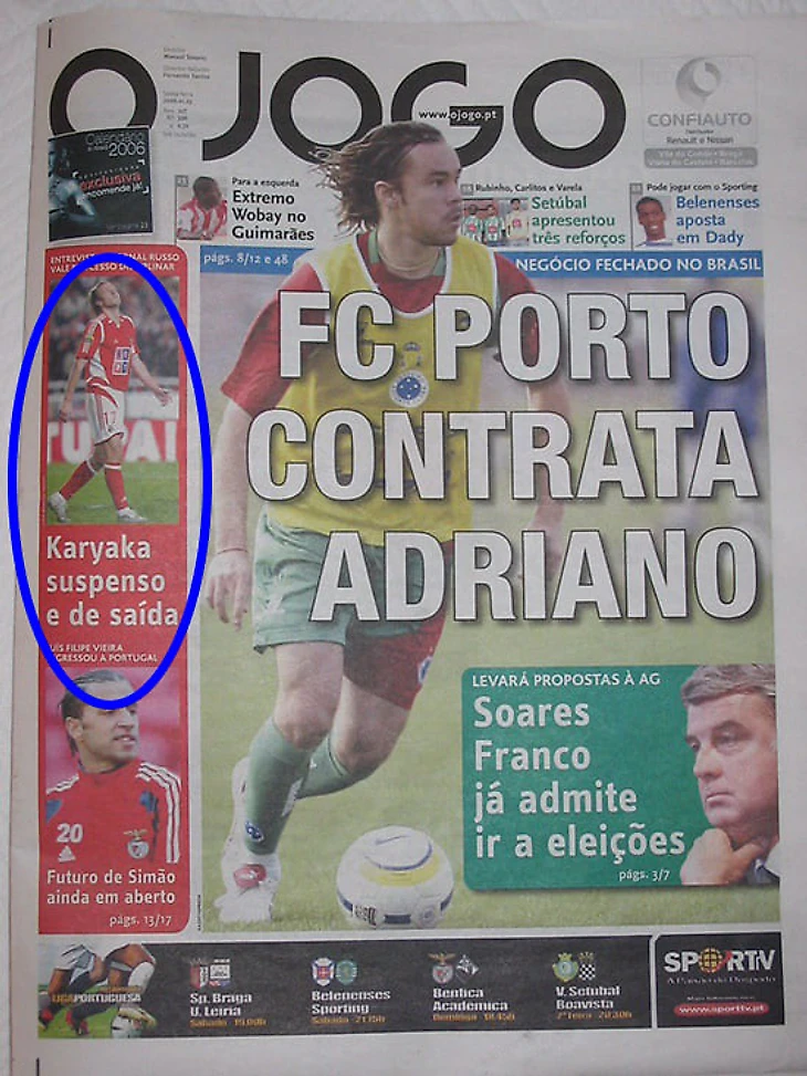В России на интервью не обратили внимания, но через день его перевели португальские медиа. Так Каряка на несколько дней стал главным героем, мелькал на обложках и получил бан от клуба – месяц ему не разрешали даже тренироваться. Потом он вернулся, но в «Бенфике» уже не заиграл.