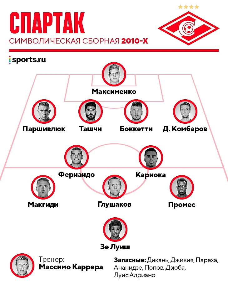 Я до сих пор вспоминаю, как после гола Тричковски стадион замолчал в полном непонимании, что будет дальше, как еще провалится Аленичев и когда все это закончится. Каким чудом Массимо Каррера превратил ту пустоту в чемпионство, навсегда останется загадкой, но очевидно, что тот «Спартак» должен быть максимально представлен в нашей сборной. Разбавим его тройкой легенд и одной моей личной вкусовщиной.