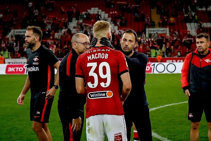 Маслов узнал о попадании в старт только в день игры. Накануне Тедеско ни на что не намекал, а предсказать основной состав по предматчевой тренировке в «Спартаке» невозможно – немецкий тренер максимально смешивает команды для упражнений.