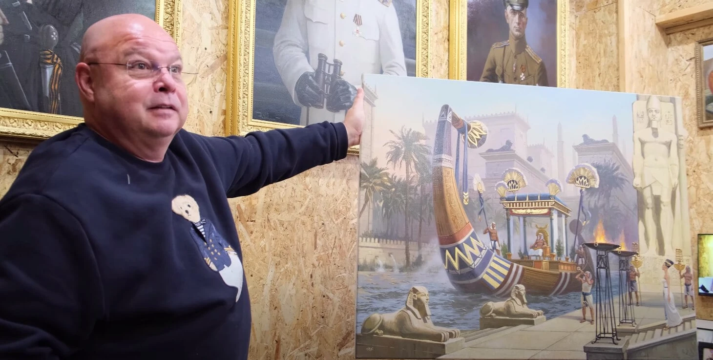 Раньше у Червиченко была коллекция Айвазовского, но он ее всю выгодно продал, оставил только эксклюзивные вещи вроде картины «Пирамиды» – она стоит несколько миллионов евро. Андрей говорит, что Айвазовский ему надоел, хочет поддерживать современников. Вот, например, одна из последних купленных картин.
