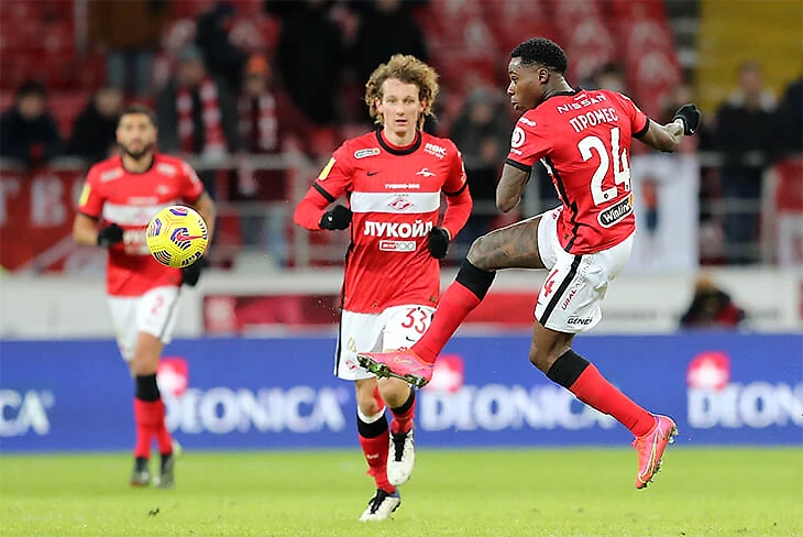 • Болельщики «Спартака» явно напряглись, но Квинси Промес не просто так приехал и не просто так обещал править. Третий гол команды Тедеско – хай-класс из первой десятиминутки. Начиная с паса Промеса и заканчивая уверенным ударом Соболева (напомнило третий гол Мбаппе «Барселоне», без шуток). Кажется, в эту секунду «Краснодар» развалился.