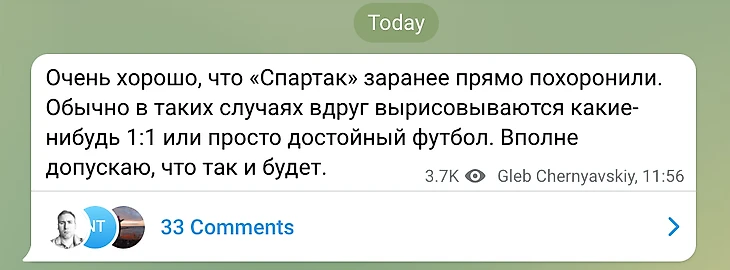 Подписывайтесь на телеграм Глеба Чернявского – там кипит жизнь «Спартака»