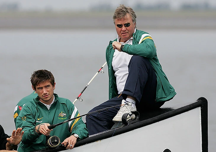 Хиддинк кайфовал с Австралией на ЧМ-2006: бил ногой по заднице Брешиано, ловил рыбу с Кьюэллом, разводил Кэйхилла на вино