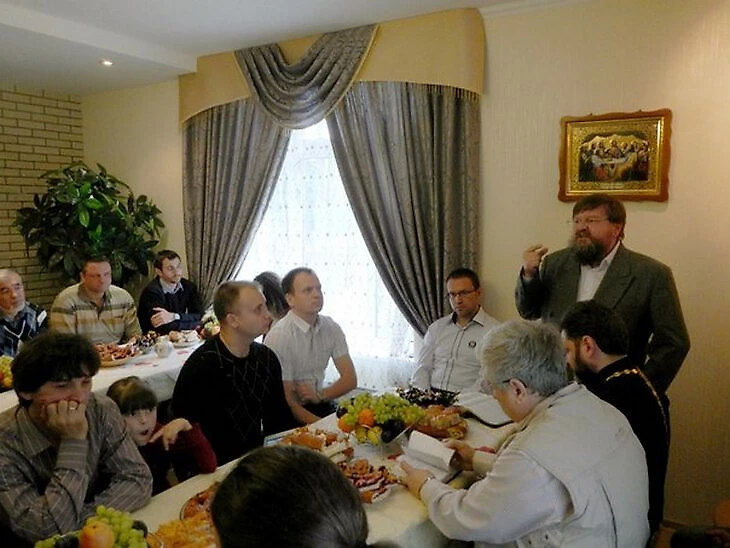 Выглядит так. Например, поднимается человек, говорит: «Я бухал, я был пьяница, а потом встретил Братца Иоанна (Братец Иоанн – основатель движения – Sports.ru). И все – я перестал». Напоминает протестантские или баптистские собрания, но в русской среде.