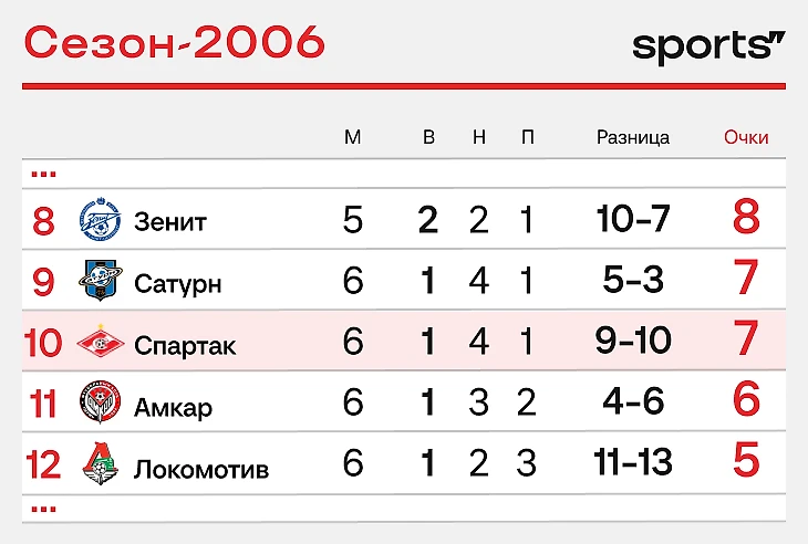 И если в сезоне-2005 критика Старкова не выглядела уместной (2-е место, возвращение в Лигу чемпионов и вообще в топ), то неудачный старт следующего сезона не задался – поражение в Суперкубке, только 1 победа в первых 6 матчах.