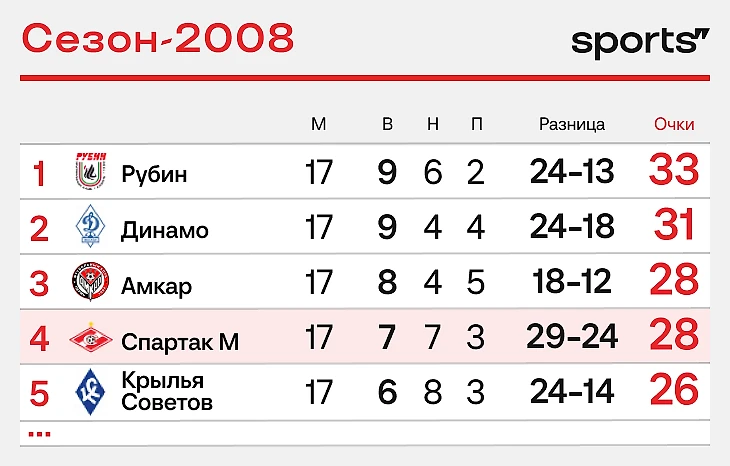 При этом, даже несмотря на неудачный рестарт, «Спартак» на момент отставки Карпина отставал от первого места всего на четыре очка, а от второго – на одно.