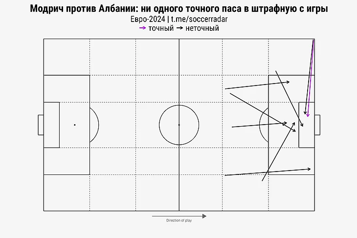 За матч с Албанией Модрич не отдал ни одного точного паса в штрафную. И это в игре, где даже ничья ставила Хорватию на грань кошмарного вылета. Когда такое было? Модрич – это же как раз про точнейшие решения в момент, когда в них уже никто не верит. А их нет.