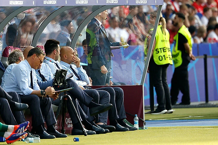 Со Швейцарией тоже не пошло: Италию сразу возили, а Спаллетти в ужасе пытался исправить ситуацию вручную. Серьезно! Лучано реально с первых минут руками и криками указывал игрокам, куда нужно бежать. И не просто эмоционировал, а требовал исполнения желаний.