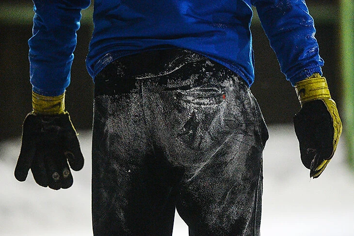 Я играл правого защитника, носился туда-сюда, но никак не согревался. Еще по мячу нормально не ударить, больно даже – он просто каменный какой-то. А самое жуткое – осознавать, что ты весь замерз на поле, а на игру вообще-то пришли болельщики. И ты хотя бы бегаешь, а они просто стоят – потому что любят футбол, поход на стадион для них мастхэв, какая бы погода там ни была.
