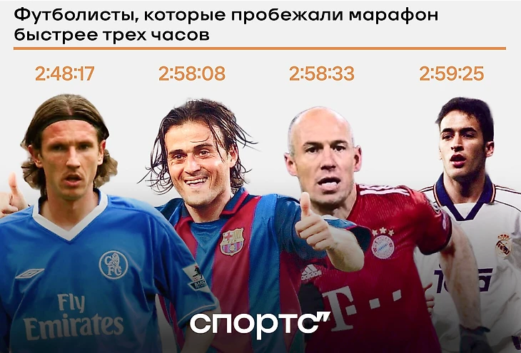 Из футболистов только Смертин, Луис Энрике, Рауль и Роббен выбегали марафон из трех часов. Алексей – быстрее всех