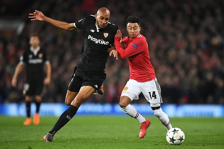 После первых пяти минут игры я подумал, что сейчас испанцы поплывут и наошибаются так же, как это сделал Ливерпуль. Но этого не случилось и запал красных дьяволов моментально иссяк. Севилья, на удивление, уверенно работала с мячом и не имела никаких комплексов перед этой “великой” командой. Уровень исполнителей андалусийцев, кстати, примерно на уровне Лестера. В обеих играх Корреа и Сарабия меня просто поразили. Принятие решений, завершение моментов, выбор позиции – на уровне чемпионшипа. Корреа получает мяч в ударной позиции, а потом круглый просто катится в руки Де Хеа. И так раз за разом. Единственный, кто перерос этот клуб – Нзонзи. Потрясающая работа с мячом, верховые единоборства, отменный выбор позиции, цепкость в отборе, первый пас, удивительный баланс и владение телом. Он всегда оказывался в нужном месте и делал абсолютно правильные телодвижения. Если и можно говорить об игроке, по уровню хоть как-то близкому к Бускетсу и Дембеле (Тоттенхэм), то это Стивен Нзонзи.