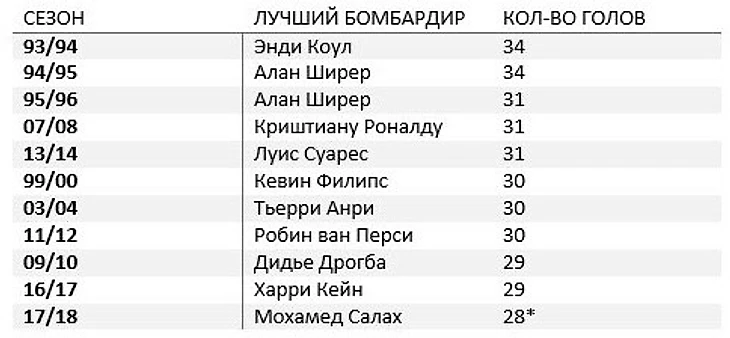 В среднем, Мохамед забивает 0,93 гола за игру в Английской Премьер-лиге. При этом командам не из Топ-6 - три четверти всех своих голов (21) ровно в 21 игре. Немного поразмыслив и обратив внимание на календарь, можно грубо предположить, что египтянин забьет около 6-7 в оставшихся матчах. Предположив, что Салаху все-таки удастся пробить отметку в 34 гола, можно констатировать, что он станет 3-им игроком в истории АПЛ (с 1992 года), кому удасться достичь этой отметки (вместе с Энди Коулом (сезон 93/94) и Аланам Ширером (сезон 94/95)). А ведь может забить и больше и поставить новый рекорд АПЛ. И все это в дебютном сезоне...